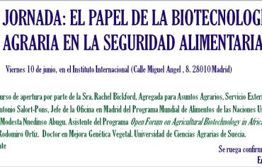 EVENTO CANCELADO: Jornada: El Papel de la Biotecnología Agraria en la Seguridad Alimentaria
