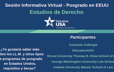 ¿Te gustaría saber más sobre los LL.M. y otros tipos de programas de posgrado en Estados Unidos, requisitos y becas? Participa en una sesión informativa virtual en el American Space Madrid sobre becas, programas de estudio y formación en EEUU. Si quiere participar en el viewing en el American Space Madrid, completa la inscripción a