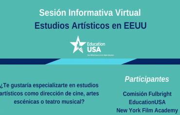 ¿Te gustaría especializarte en estudios artísticos como dirección de cine, artes escénicas o teatro musical? Participa en una sesión informativa virtual en el American Space Madrid sobre becas, programas de estudio, formación y oportunidades de desarrollo profesional en EEUU. Si quiere participar en el viewing en el American Space Madrid, completa la inscripción a través