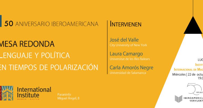 La editorial Iberoamericana y el Instituto Internacional le invita a la mesa redonda que con el titulo “Lenguaje y política en tiempos de polarización” se celebará el 22 de octubre con motivo del 5o aniversario de Iberoamericana.